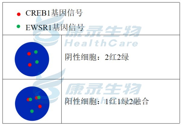 90%以上的肿瘤具有t(2; 22)易位,导致EWSR1-CREB1基因融合,用于辅助诊断。