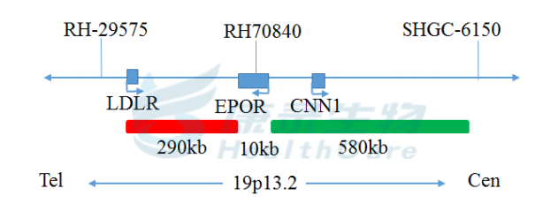 EPOR基因5’端标记为绿色; EPOR基因3’端标记为橘红色。