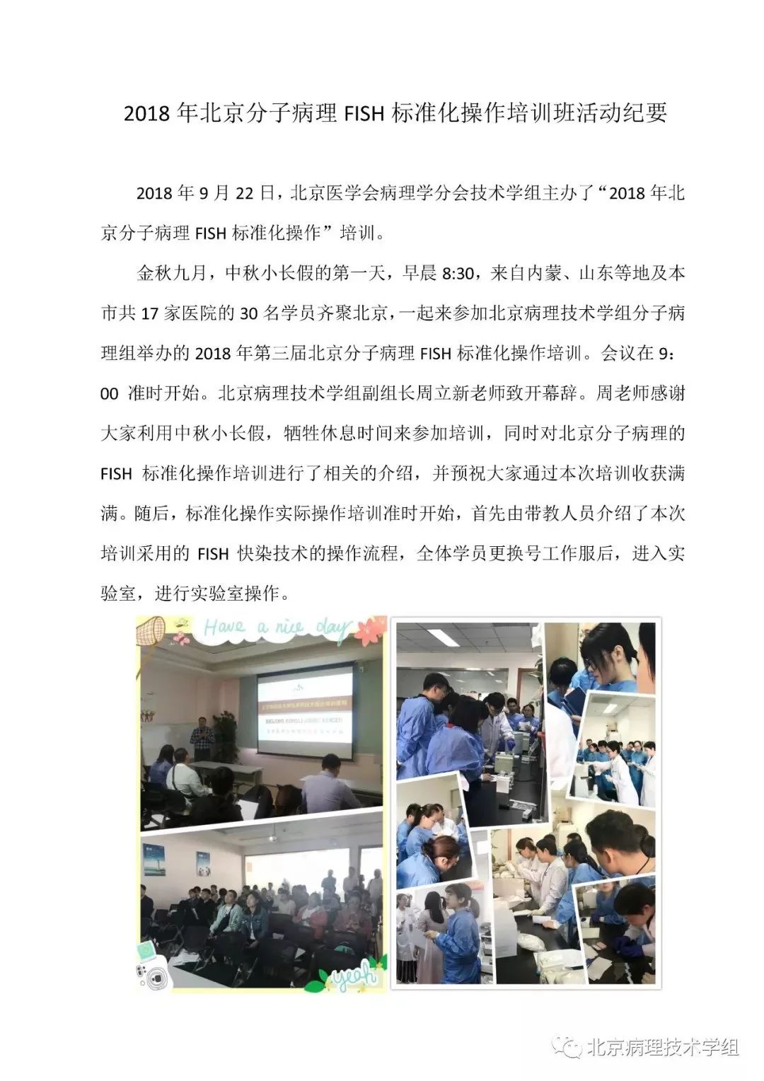 由北京病理技术学组承办的第三届分子病理FISH标准化操作培训班于2018年9月22日在北京成功举行。参会学员来自20多家医院,会场座无虚席,学术气氛浓郁。培训会上所用快速FISH探针、前处理设备及试剂,均为威廉希尔500欧洲指数产品。通过老师的详细讲解与操作,结合威廉希尔500欧洲指数产品带来的快速、高效、灵敏等特点,使参会学员受益匪浅。