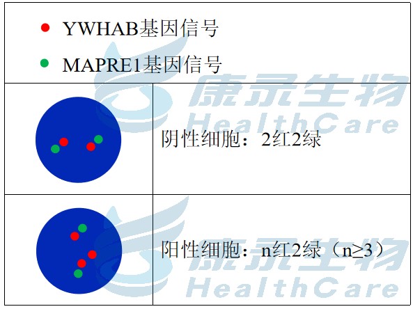 YWHAB橘红色探针;MAPRE1绿色探针