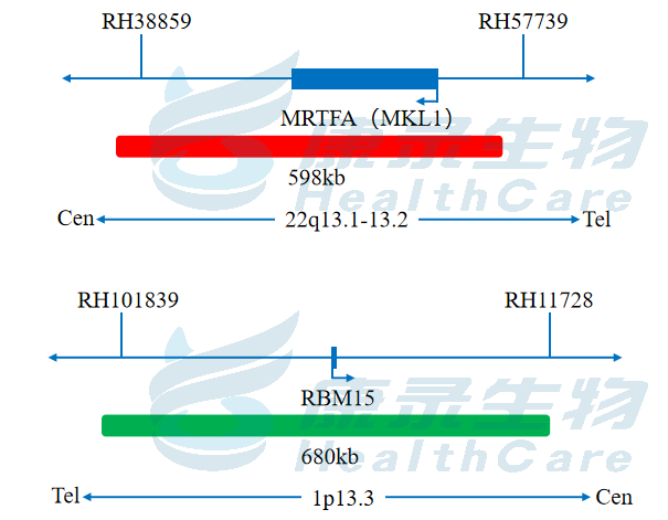 MKL1橘红色探针;RBM15绿色探针