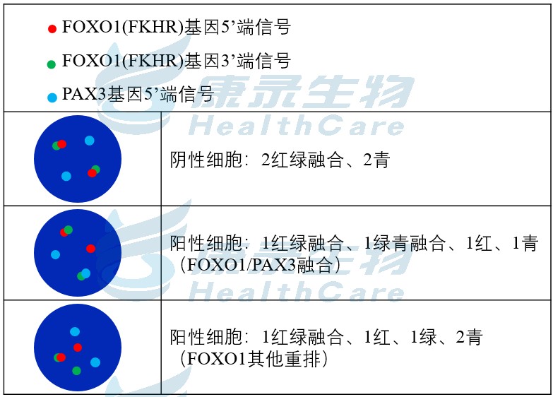 FOXO1(FKHR)橘红色探针;FOXO1(FKHR)绿色探针;PAX3青色探针