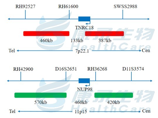 TNRC18橘红色探针;NUP98全长绿色探针