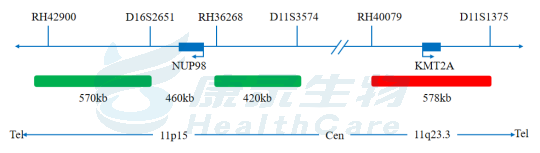 KMT2A全长橘红色探针;NUP98全长绿色探针